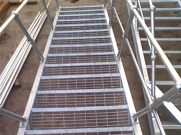 根據(jù)樓梯踏步板裝置情況分為焊接固定的梯踏板和螺栓固定的梯踏板。其間焊接固定的梯踏板即鋼格板,螺栓固定的梯踏板需要給鋼格板加上65X5mm的扁鋼作為側(cè)板。